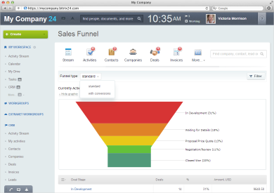 O Bitrix24 pode ser usado para reuniões on-line para equipes ou com clientes. Os participantes externos são facilmente convidados através da extranet.